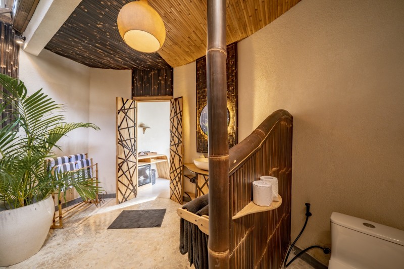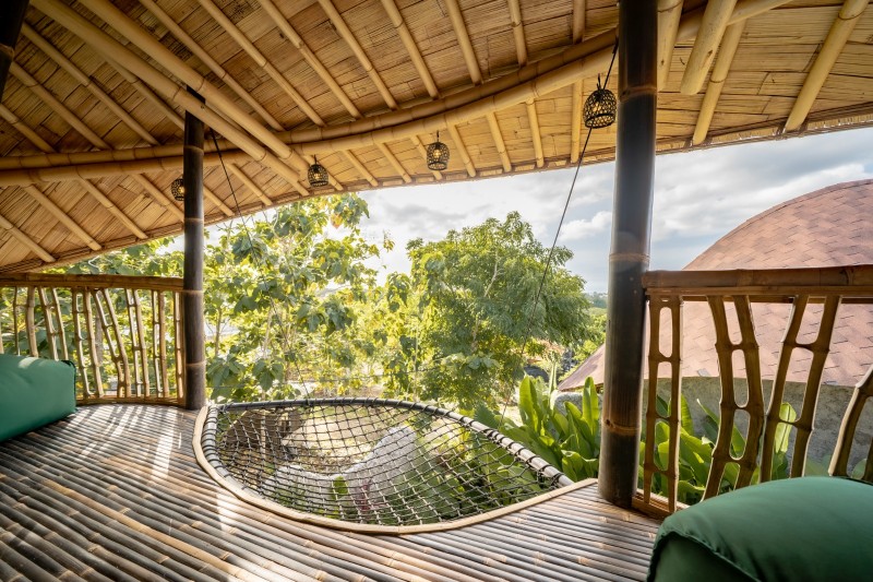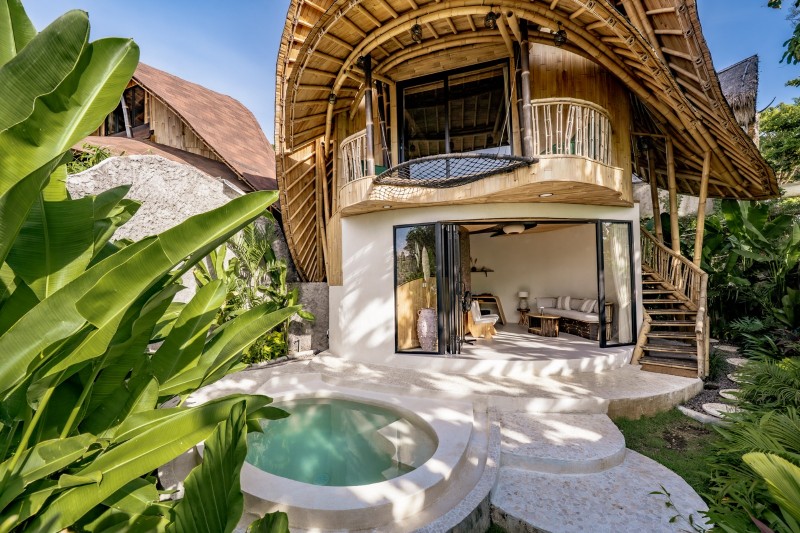 Chill vibe and Eco, Health Conscious, this hotel is all built in bamboo and natural materials. The bungalows get lost in the scenery, a jungle like feel of plants, gardens, ponds and infinity pools with stunning view over the ocean.